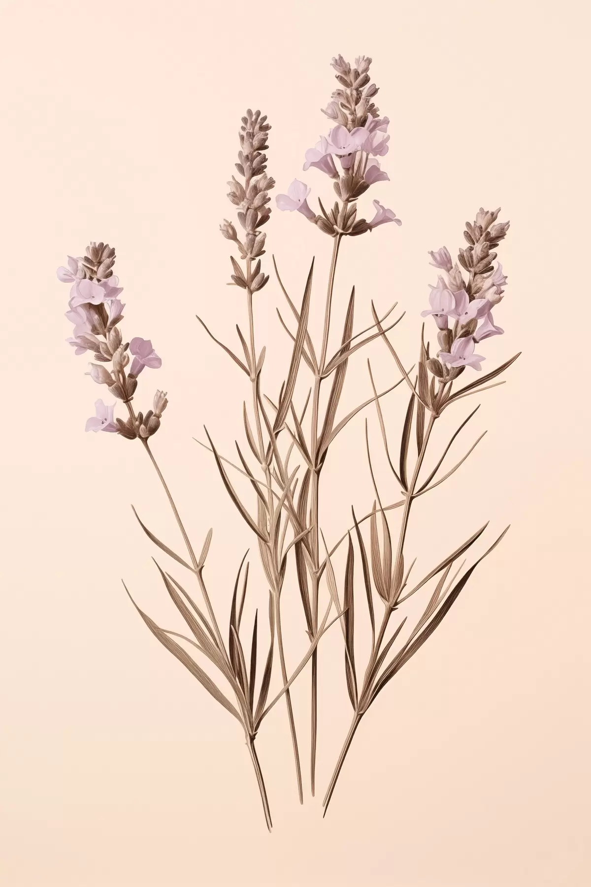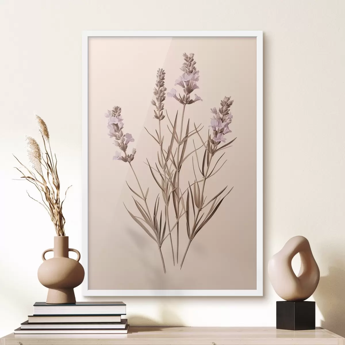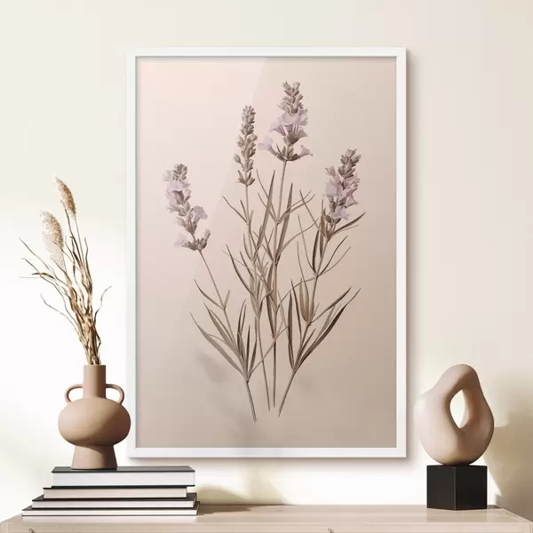 Poster lavanda, botanic, fundal bej, violet moale, frunze, floral, natural, tulpină Nr f45100