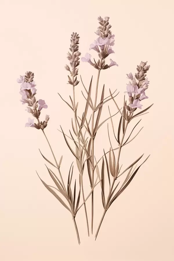 Poster lavanda, botanic, fundal bej, violet moale, frunze, floral, natural, tulpină Nr f45100
