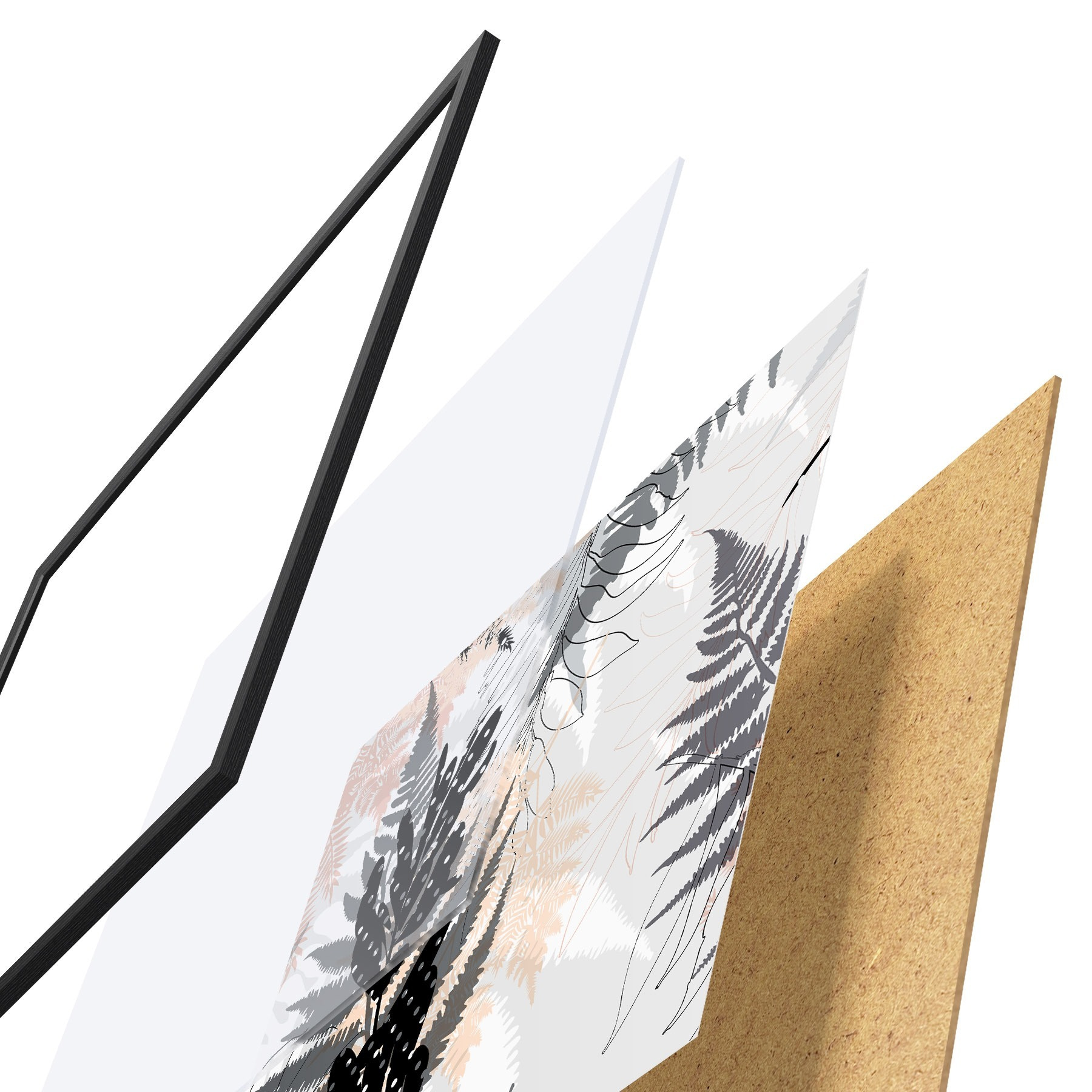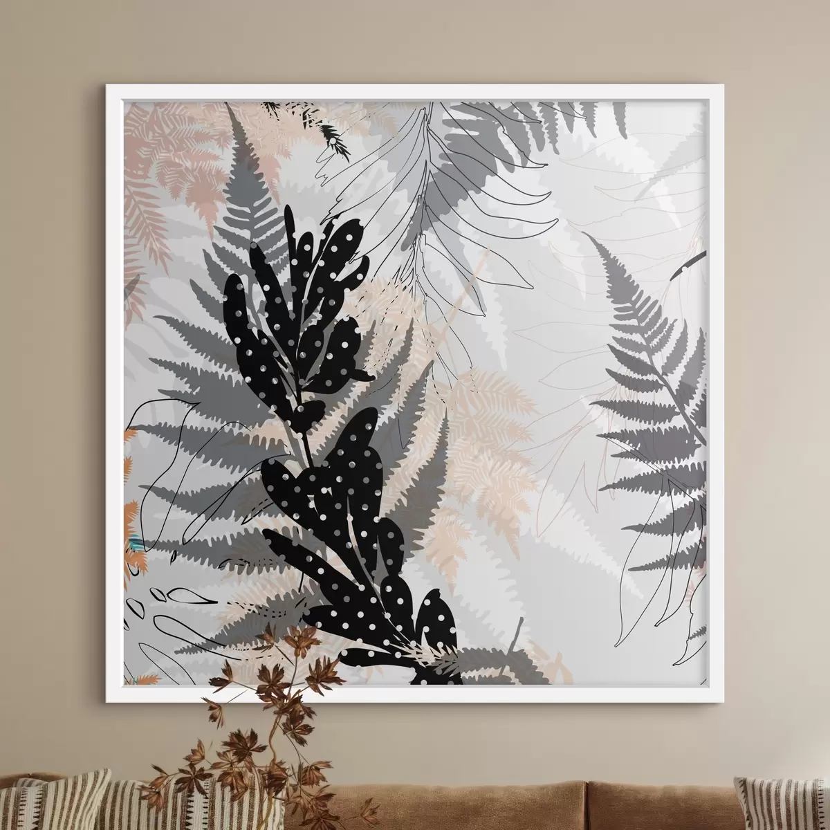 Poster print natural, frunze decorative, amestec de junglă, forme de ferigă, paletă neutră, artă cu frunze Nr f45104