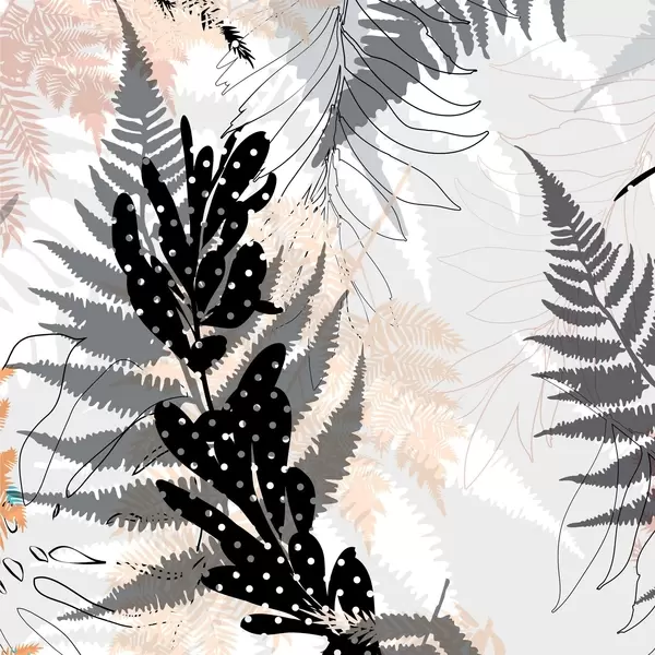 Poster print natural, frunze decorative, amestec de junglă, forme de ferigă, paletă neutră, artă cu frunze Nr f45104