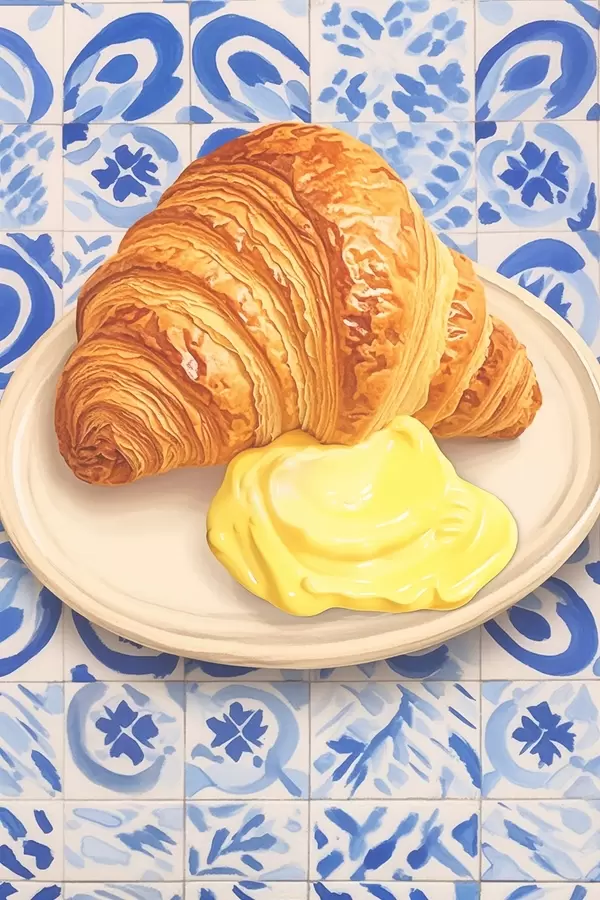 Poster Croissant cu unt pe o farfurie Nr f45146