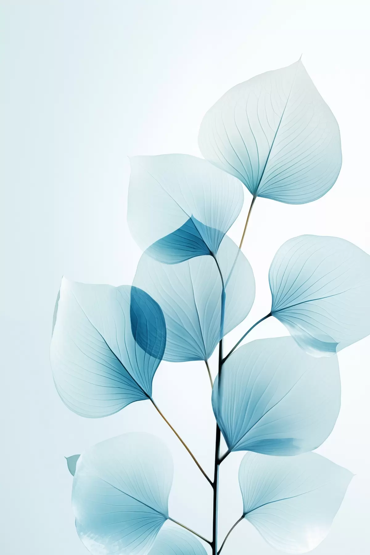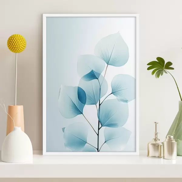 Poster Creangă cu frunze albastre translucide, vene delicate vizibile, compoziție ușoară și calmă, estetică minimalistă Nr f45175