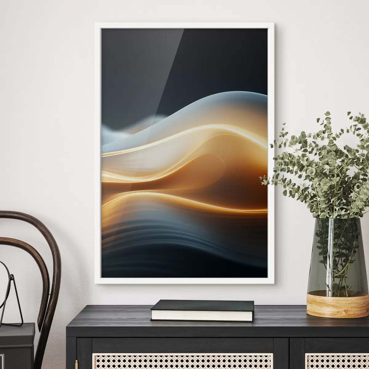 Poster Forme curgătoare abstracte cu linii portocalii, curbe și linii netede, compoziție dinamică, fundal întunecat Nr f45183