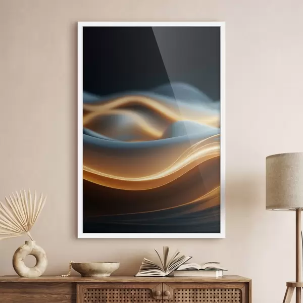 Poster Forme curgătoare abstracte cu linii portocalii, curbe și linii netede, compoziție dinamică, fundal întunecat Nr f45184