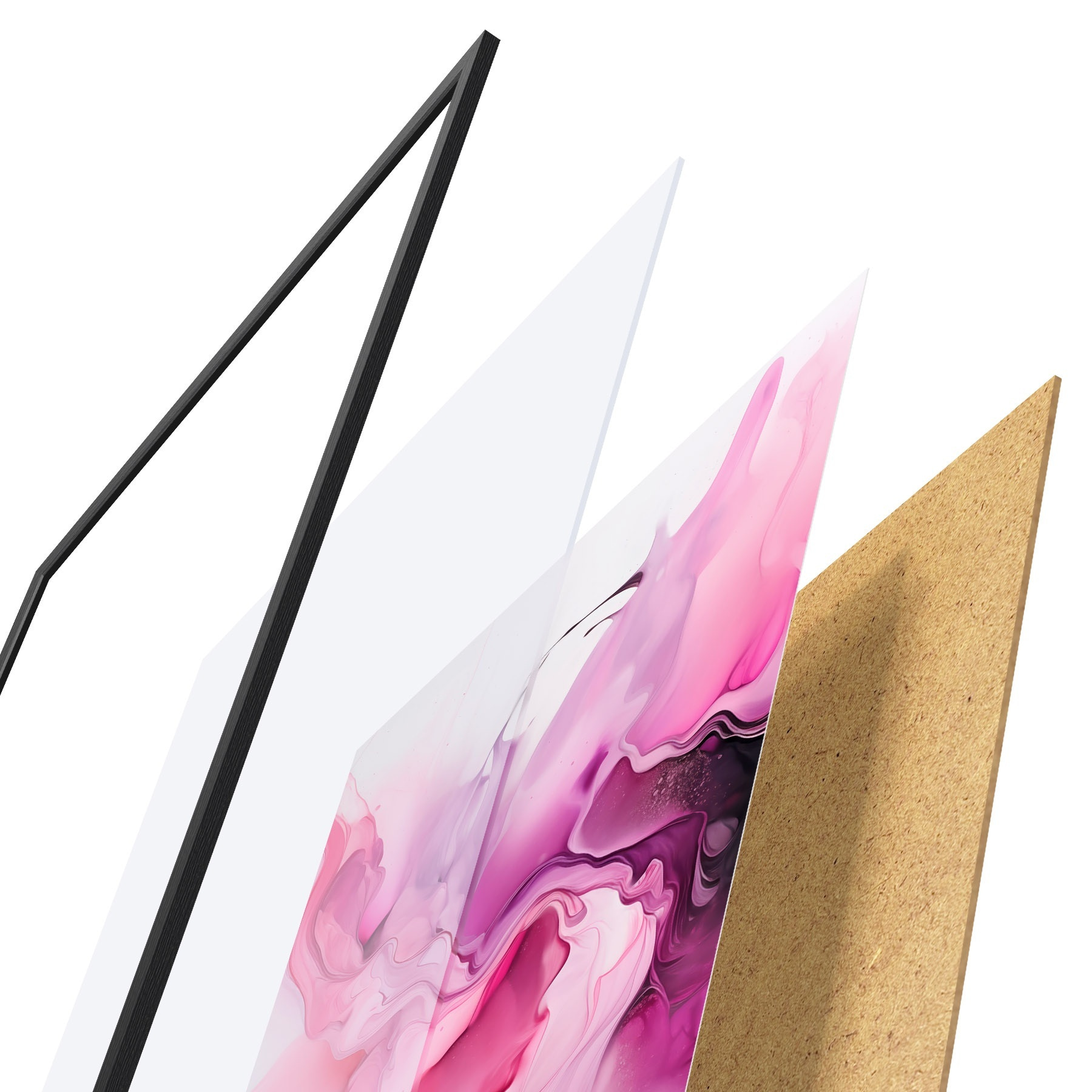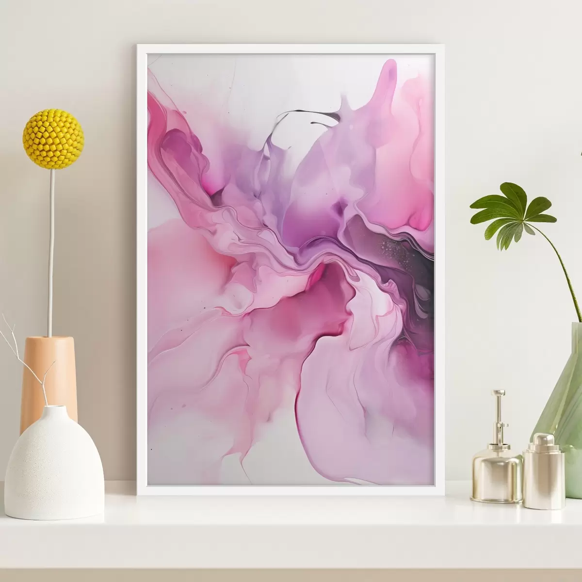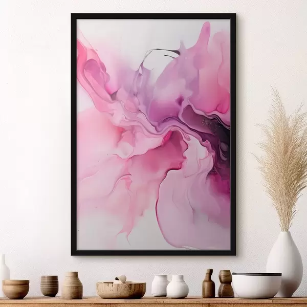 Poster Vârtejurile abstracte de roz, violet și negru se îmbină într-o compoziție fluidă, organică, creând un sentiment de mișcare Nr f45195