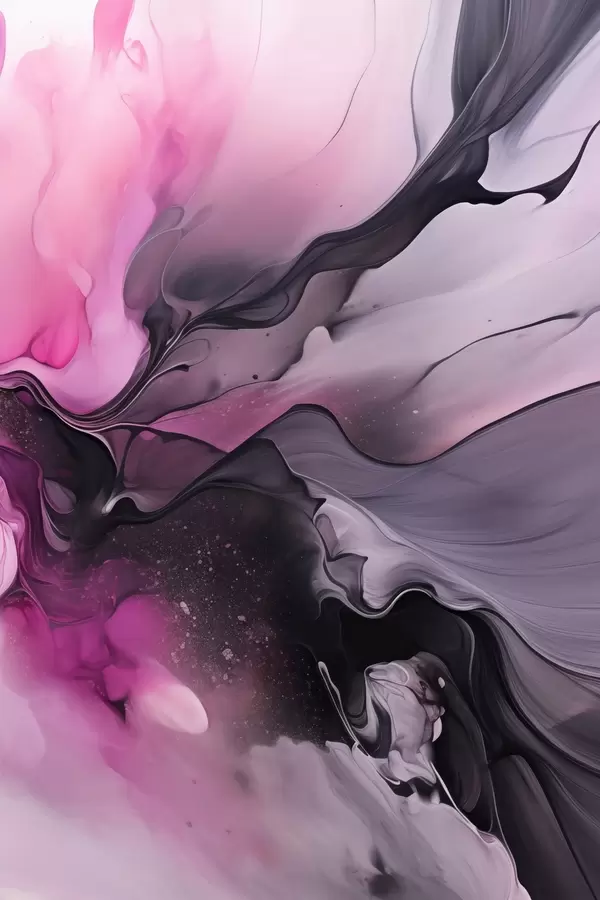Poster Vârtejurile abstracte de roz, violet și negru se îmbină într-o compoziție fluidă, organică, creând un sentiment de mișcare Nr f45196