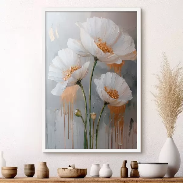 Poster Margarete albe: pictură volumetrică pe fundal albastru Nr f45240