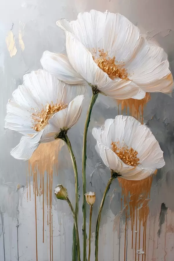 Poster Margarete albe: pictură volumetrică pe fundal albastru Nr f45240