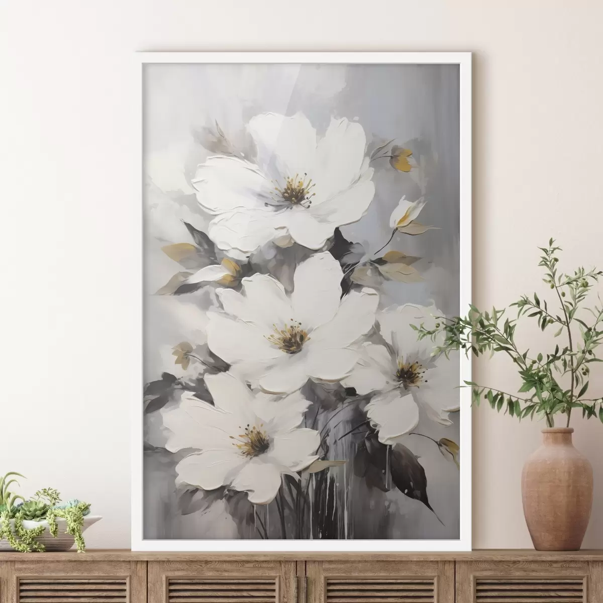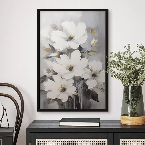 Poster Flori albe: pictură volumetrică pe fond gri Nr f45252