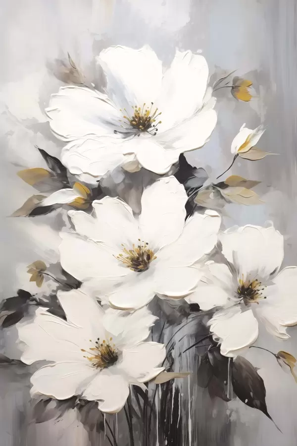 Poster Flori albe: pictură volumetrică pe fond gri Nr f45252