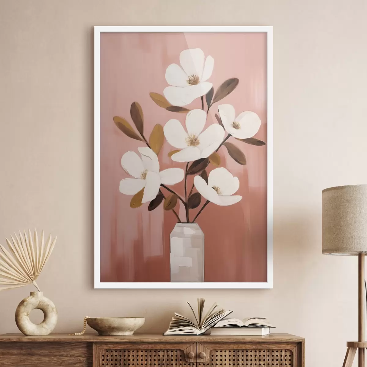 Poster Magnolii albe într-o vază albă: pictură florală minimalistă Nr f45254