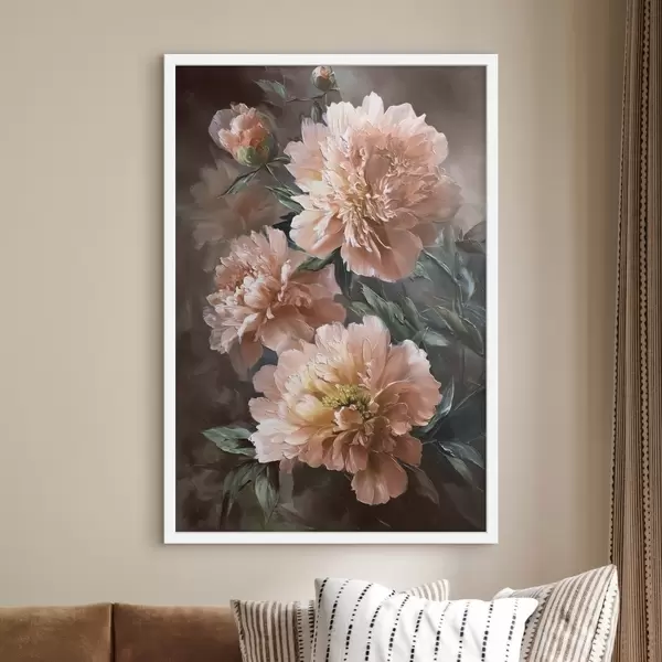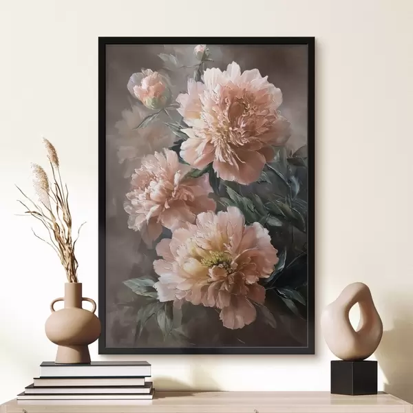 Poster Bujor roz luxuriant pe un fundal în tonuri calde în stil brushstroke f45260