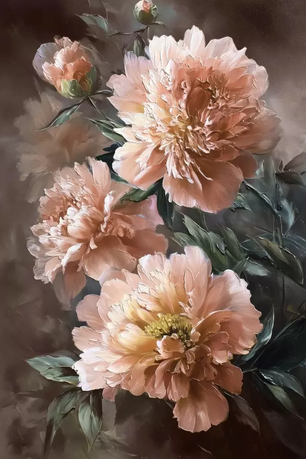 Poster Bujor roz luxuriant pe un fundal în tonuri calde în stil brushstroke Nr f45260