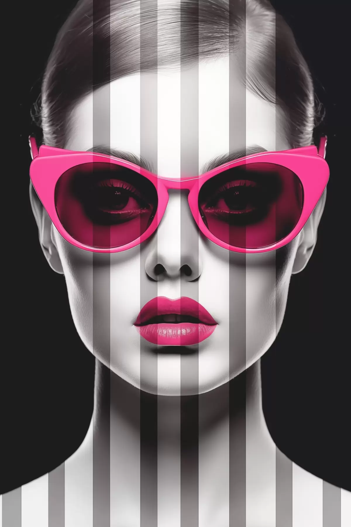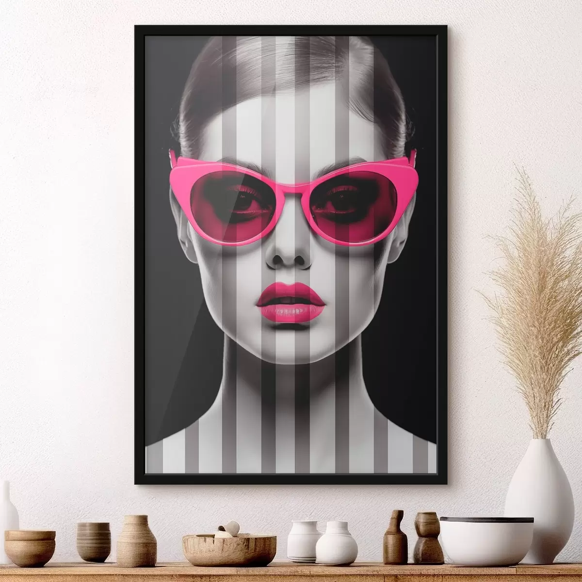 Poster Femeie care poartă ochelari roz cu dungi albe și negre Nr f45315