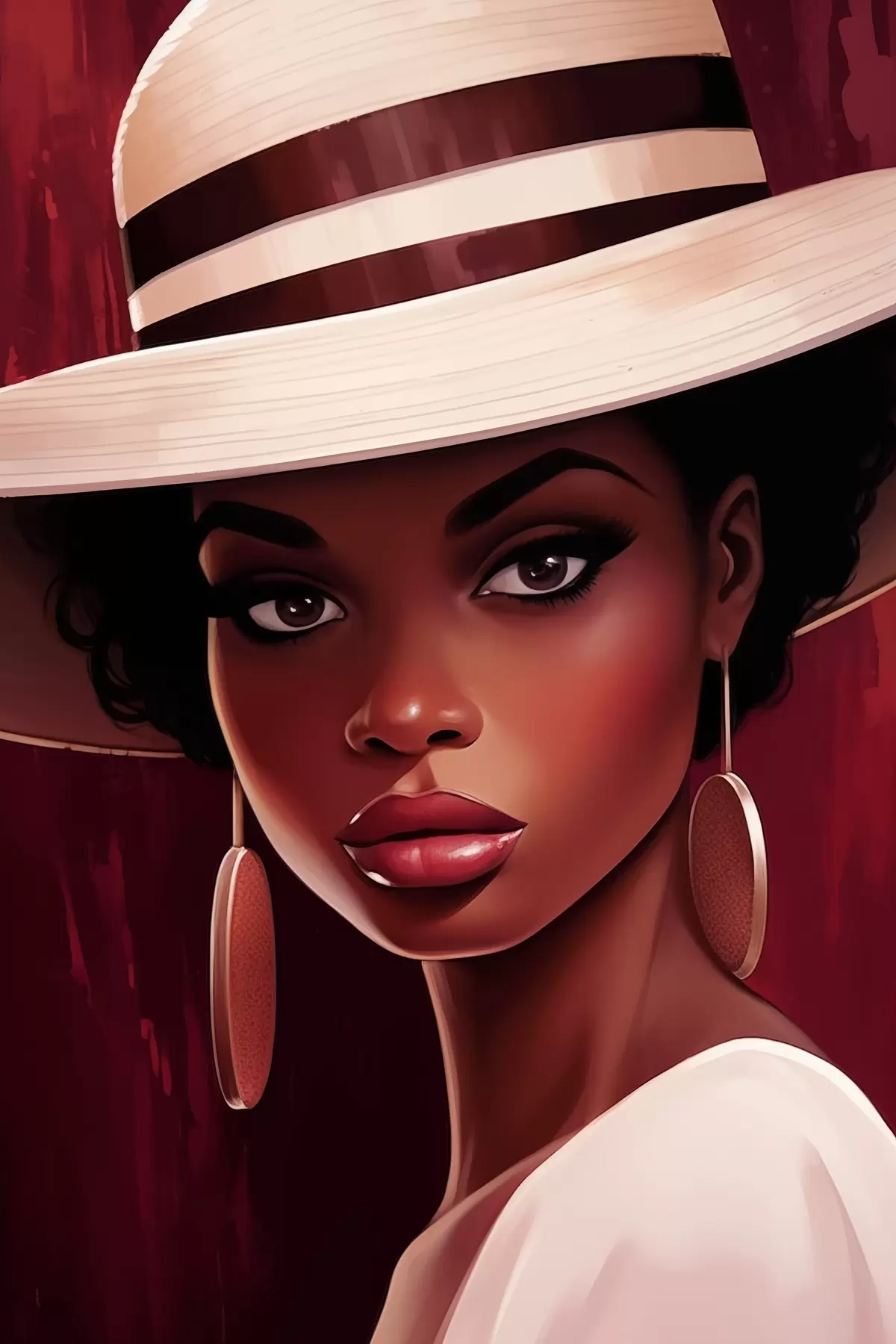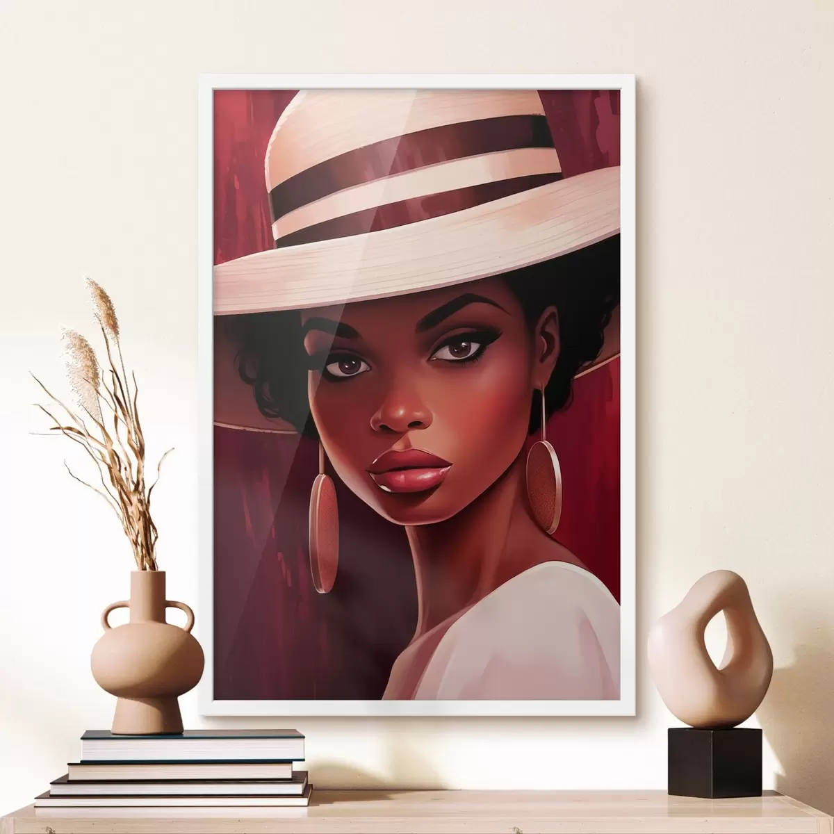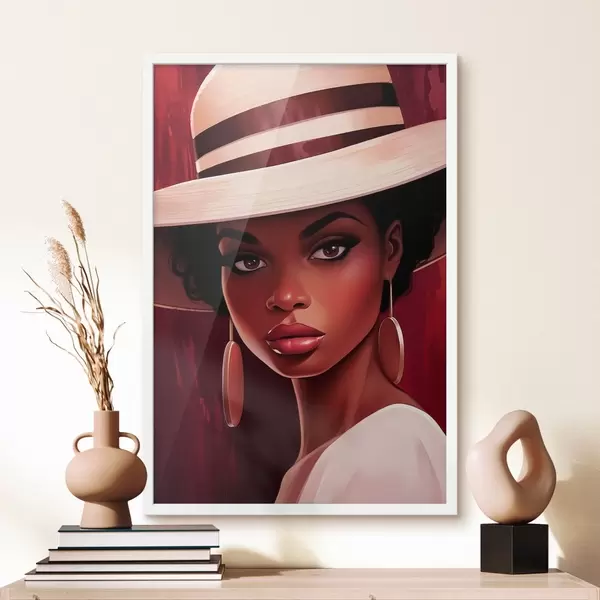 Poster Femeie cu o pălărie de culoare deschisă și cercei rotunzi Nr f45323