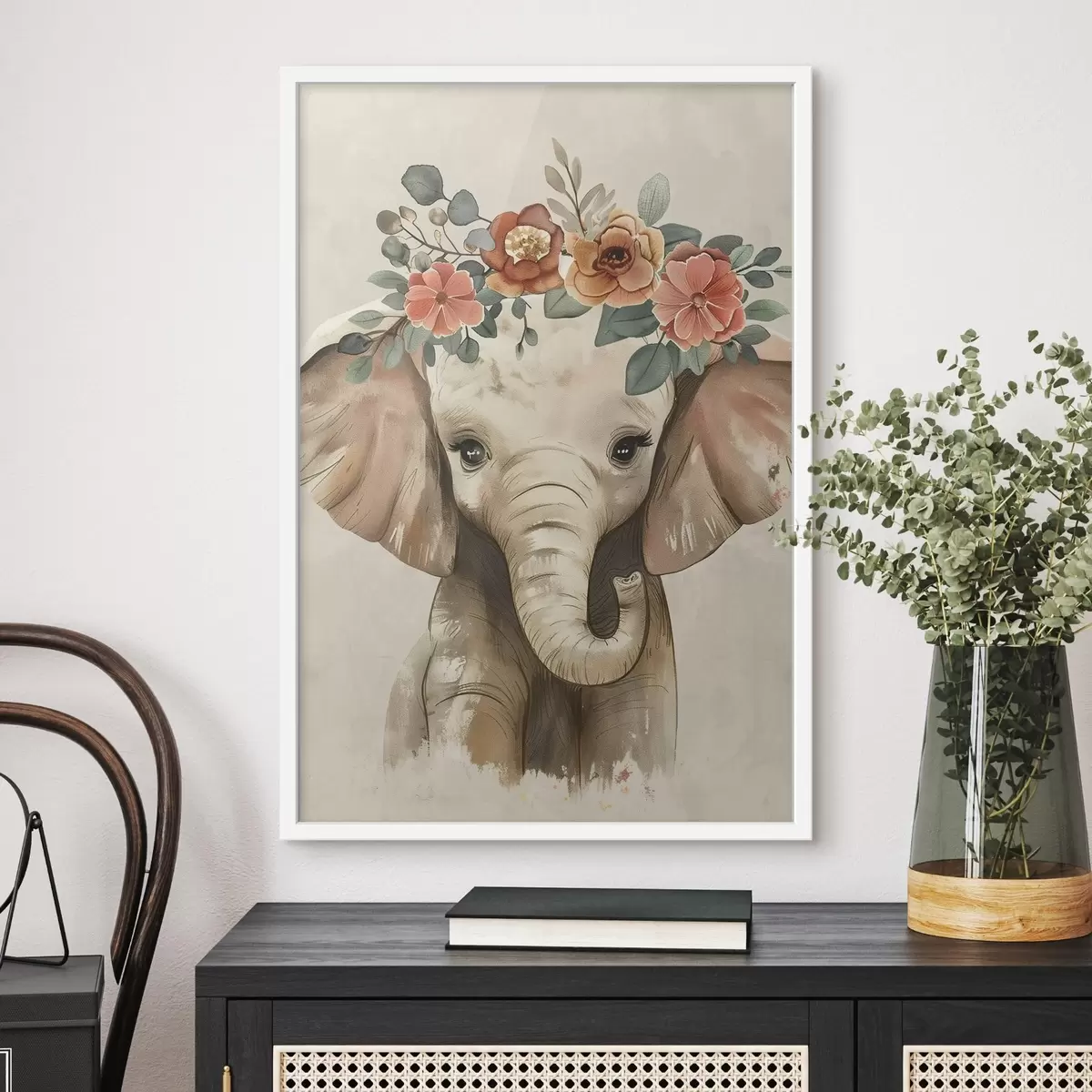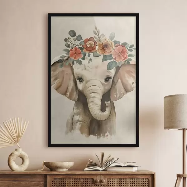 Poster Elefant drăguț de acuarelă cu flori Nr f45330