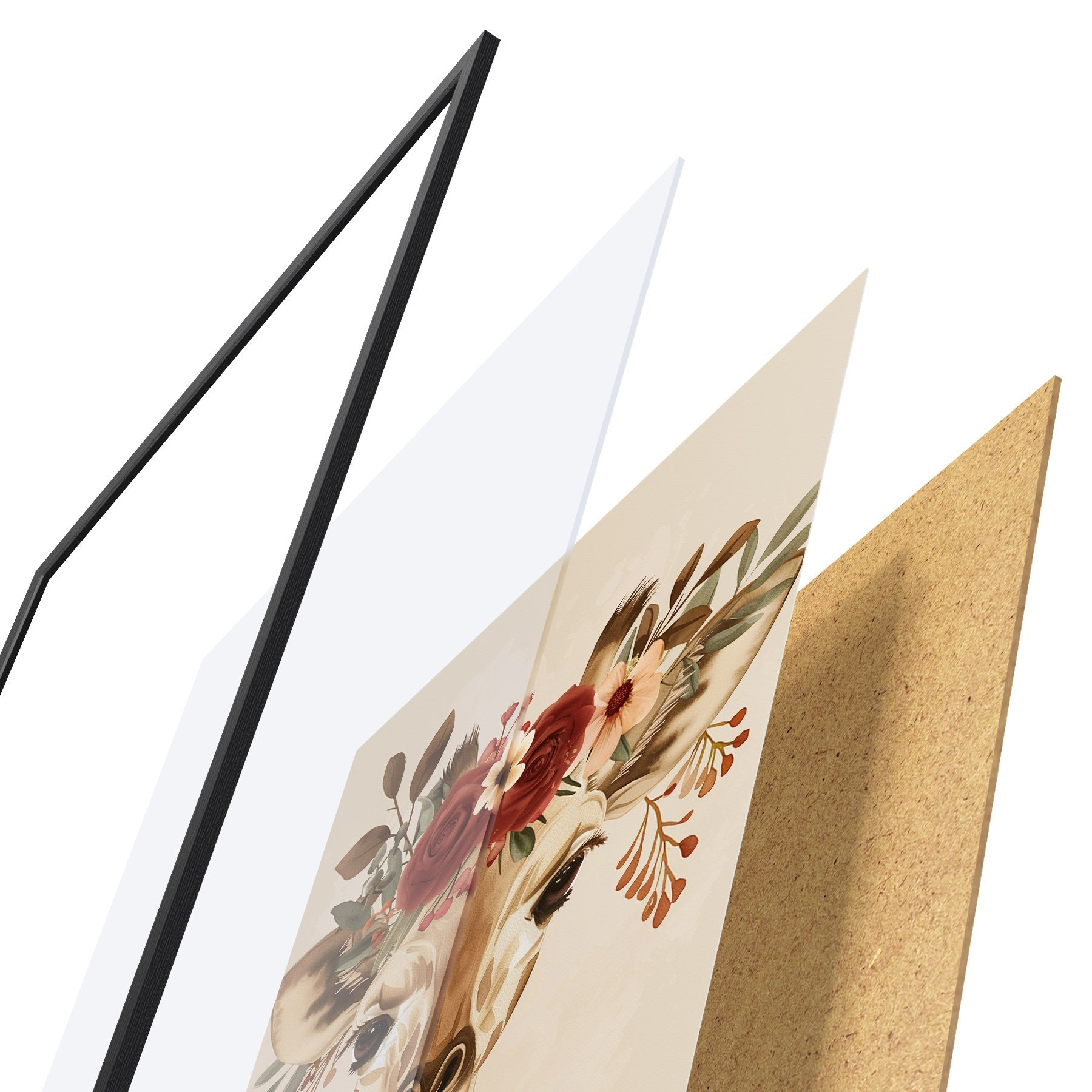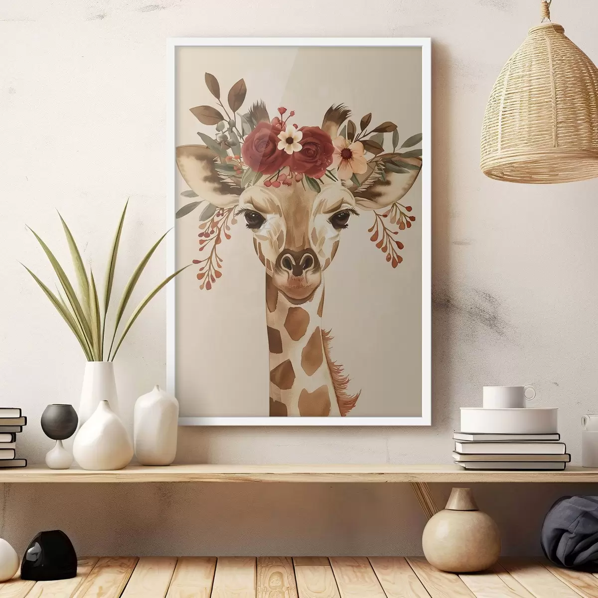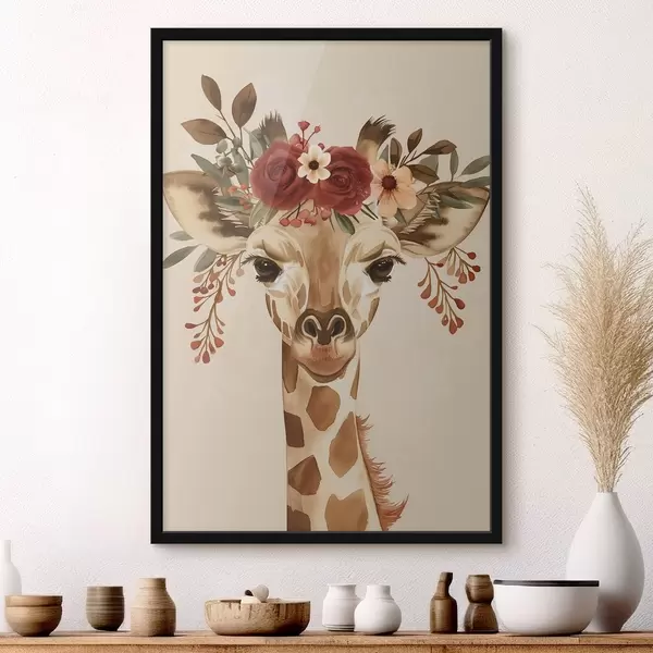 Poster Girafă în stil acuarelă cu flori pe cap Nr f45331
