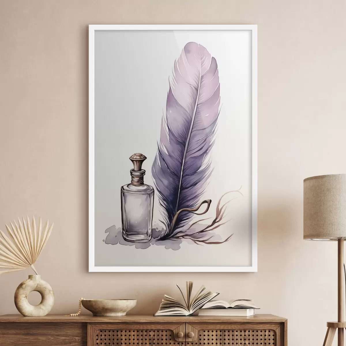 Poster Ilustrație acuarelă de o pană și sticlă de cerneală Nr f45410
