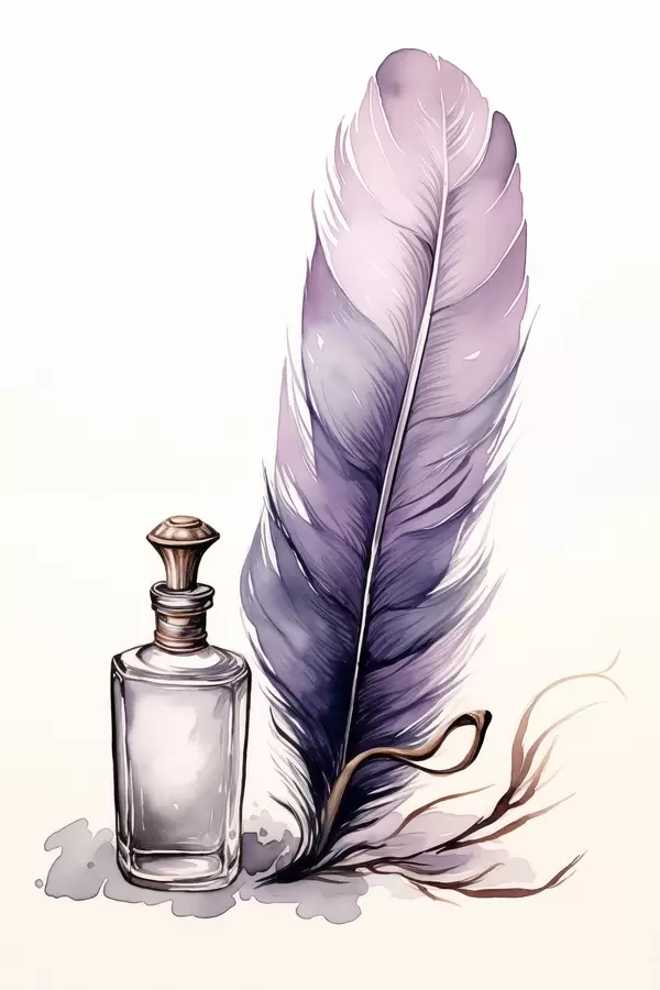 Poster Ilustrație acuarelă de o pană și sticlă de cerneală Nr f45410