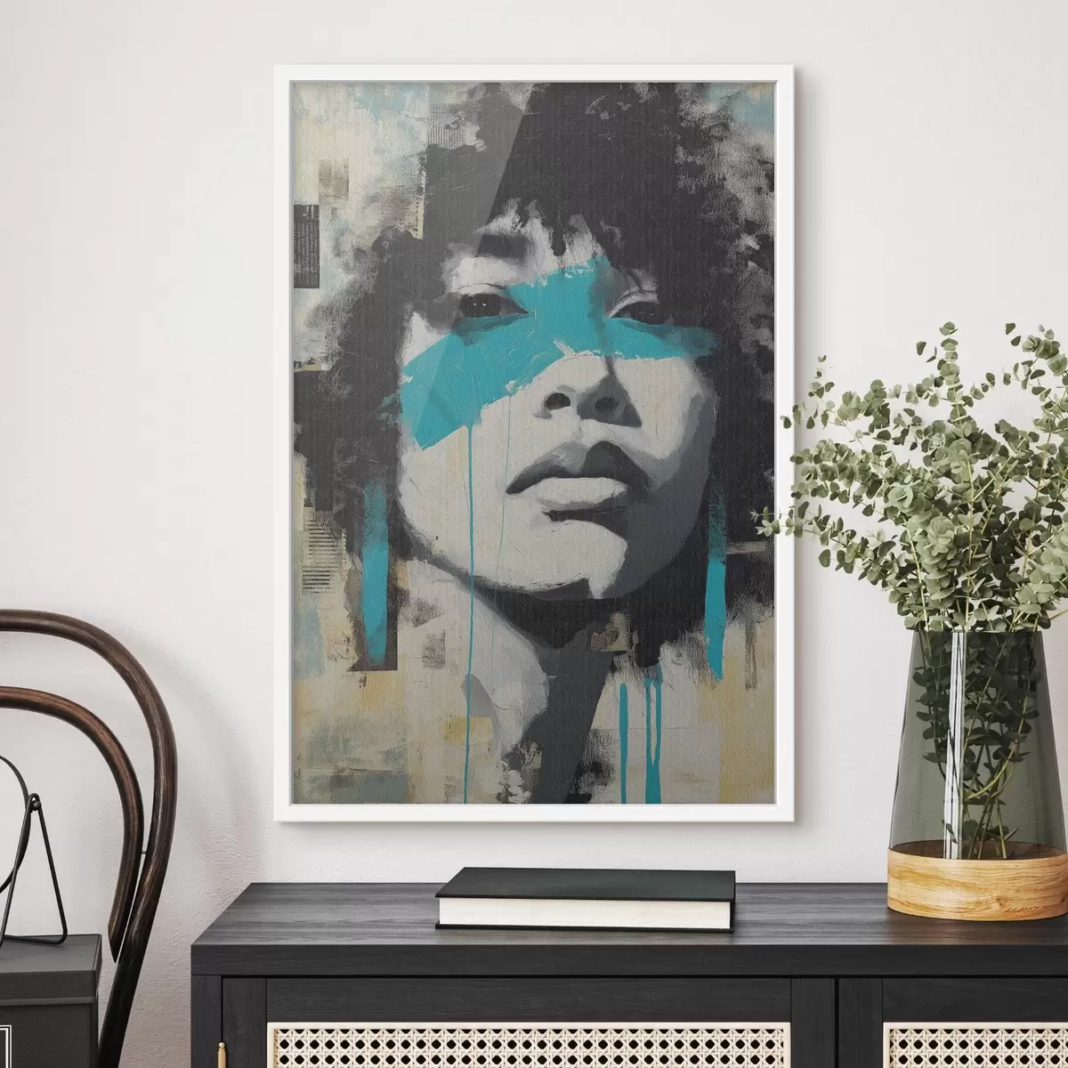 Poster Portret în media mixtă cu fragmente de culori și texturi Nr f45417