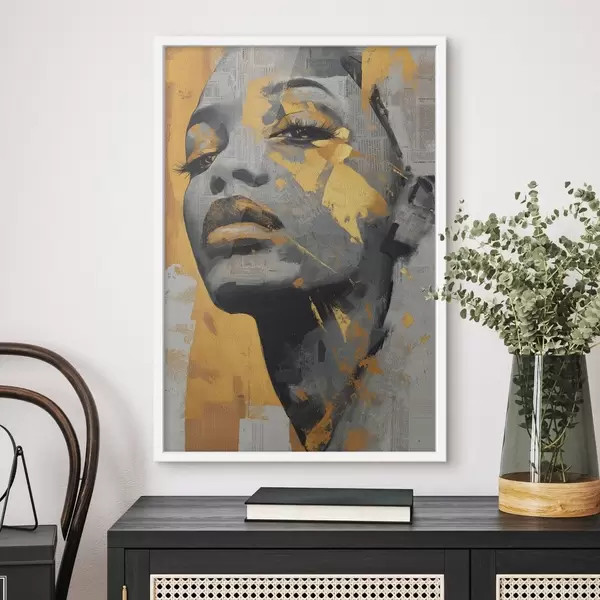 Poster Portret în media mixtă cu fragmente de ziar și tușe decorative f45419