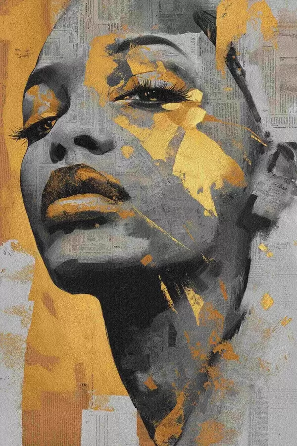 Poster Portret în media mixtă cu fragmente de ziar și tușe decorative Nr f45419