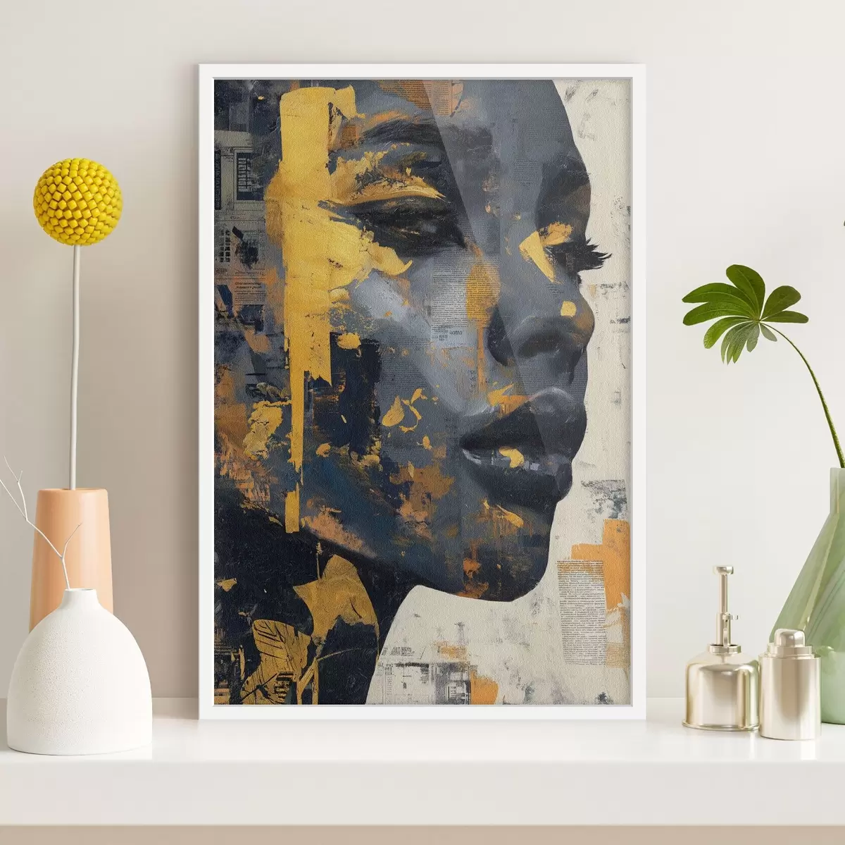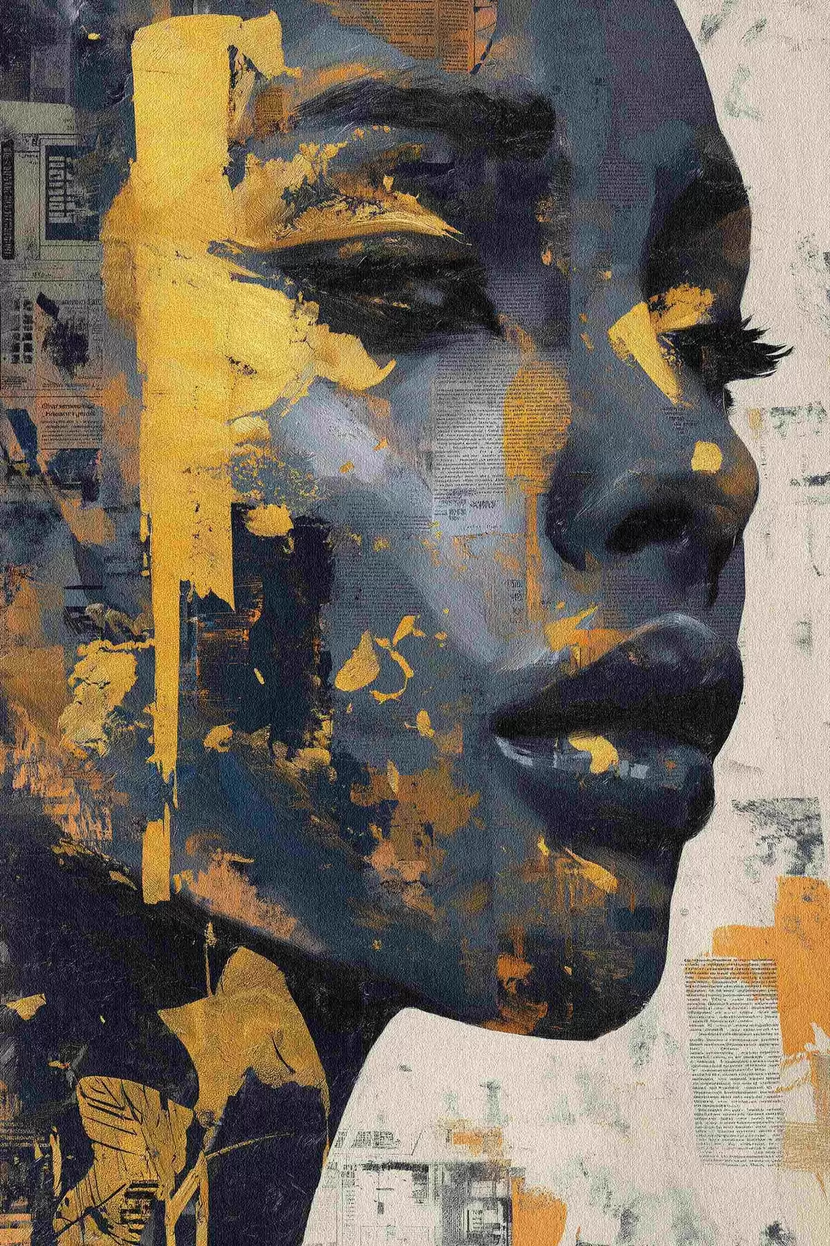 Poster Portret în media mixtă cu fragmente de ziar și tușe decorative Nr f45420