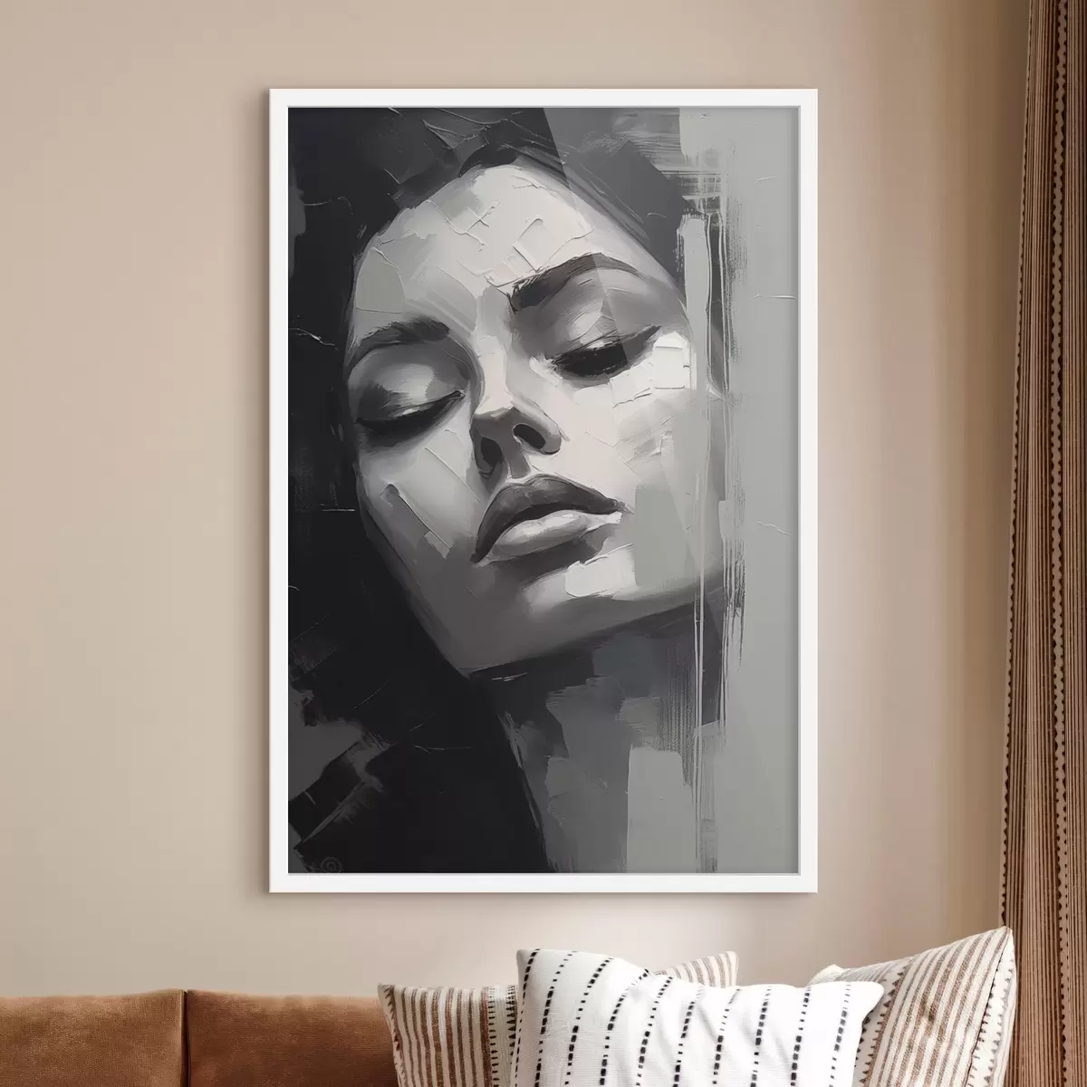 Poster Portret alb-negru al unei femei cu ochii închiși Nr f45479