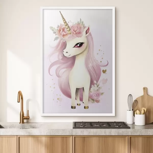 Poster Unicorn cu coamă roz și coroană florală Nr f45484