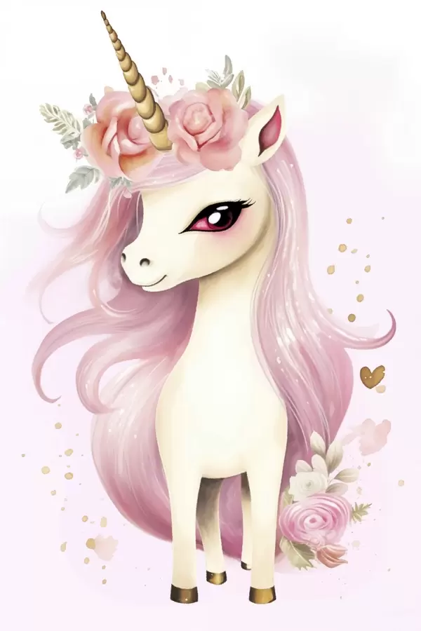 Poster Unicorn cu coamă roz și coroană florală Nr f45484
