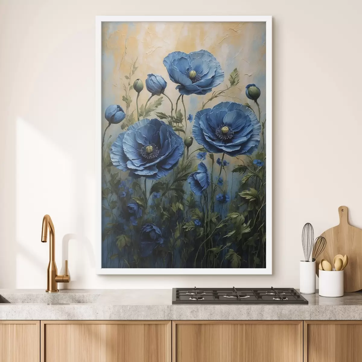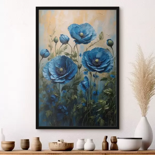 Poster Poppies mari albastre cu muguri pe un fundal deschis f45488