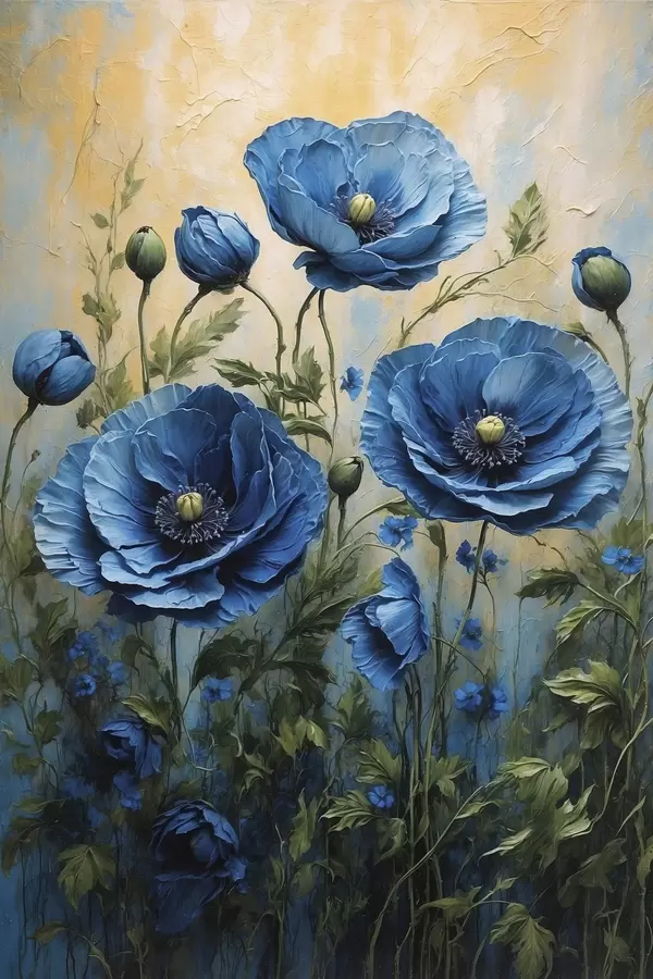 Poster Poppies mari albastre cu muguri pe un fundal deschis Nr f45488