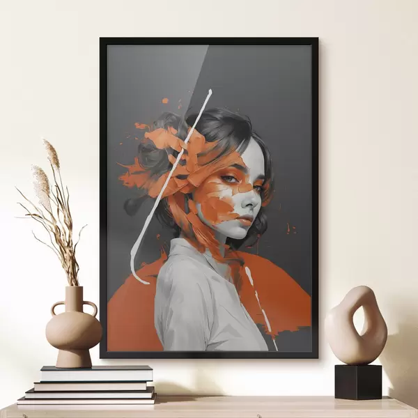 Poster Portret de femeie cu tușe portocalii f45489