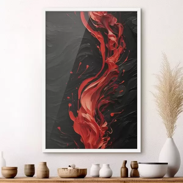 Poster Abstract cu tușe roșii pe fundal negru Nr f45490