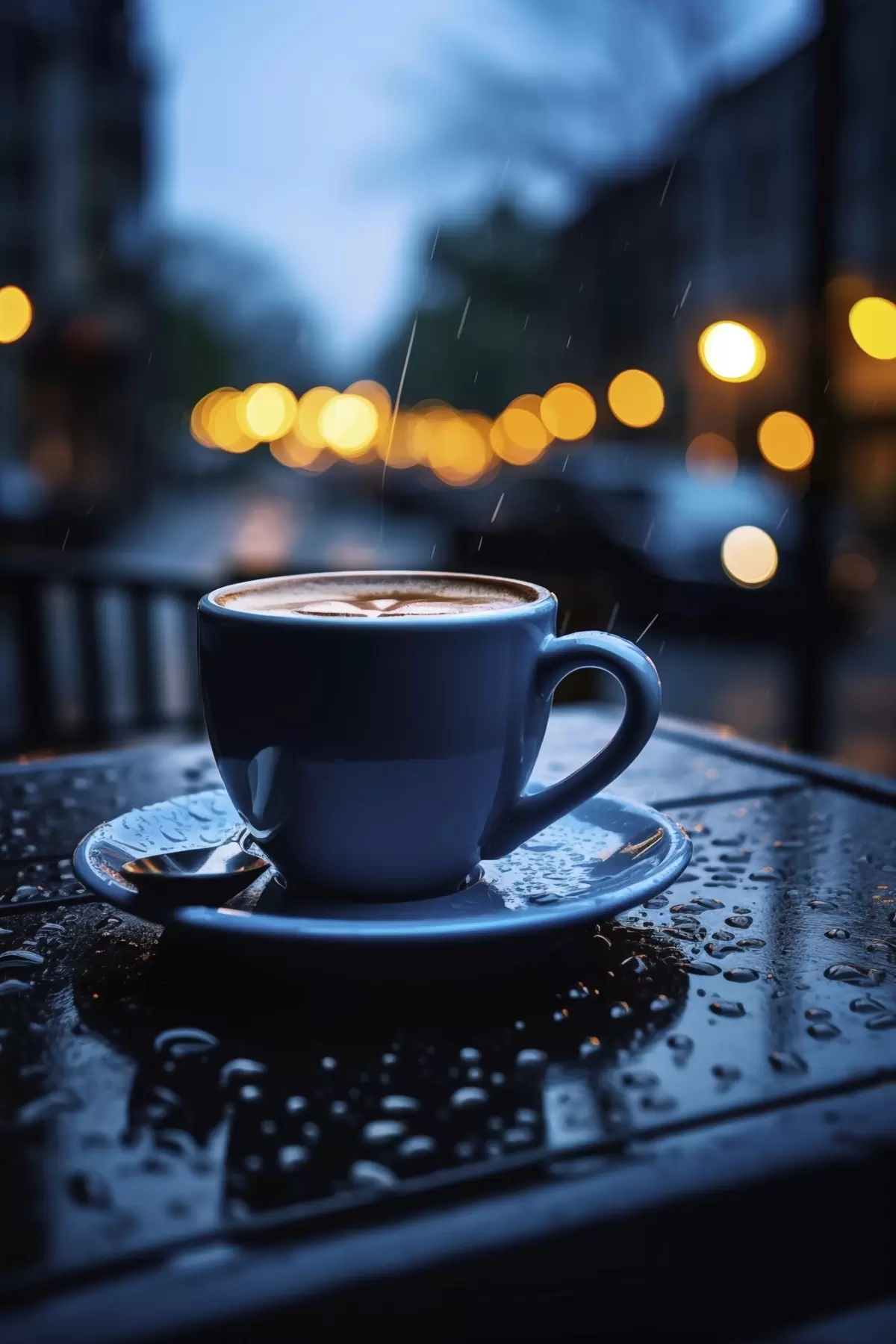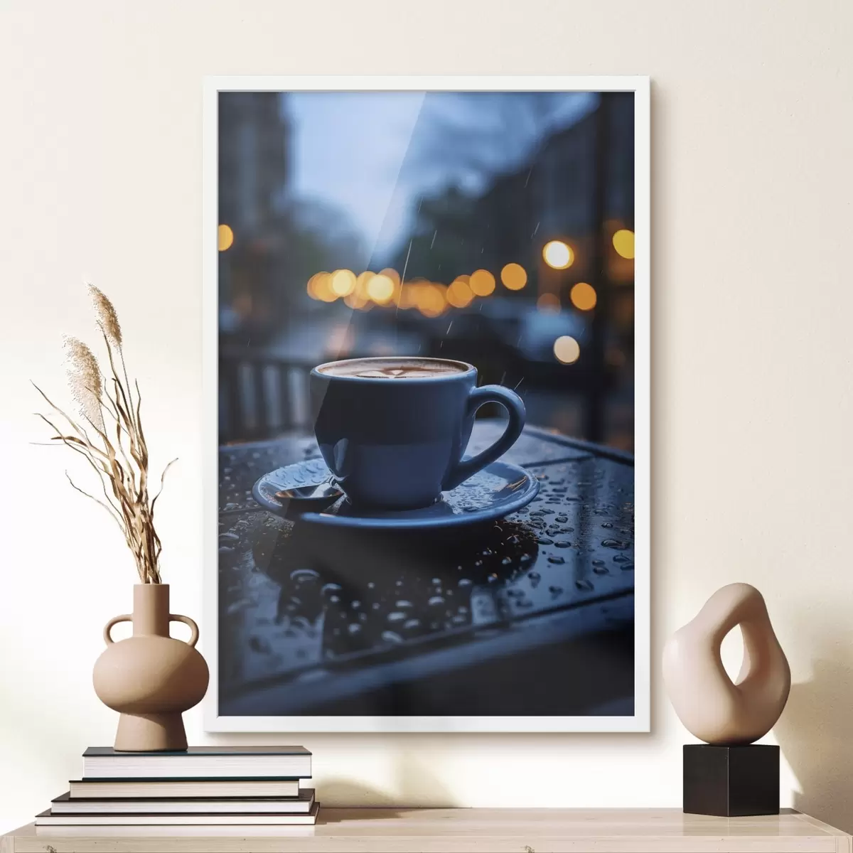 Poster O ceașcă de cafea pe masă în ploaie Nr f45497