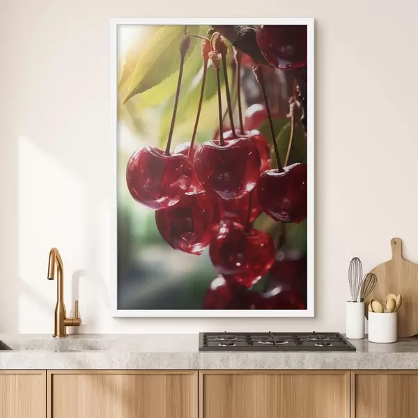 Poster Cireșe roșii strălucitoare în soare Nr f45498