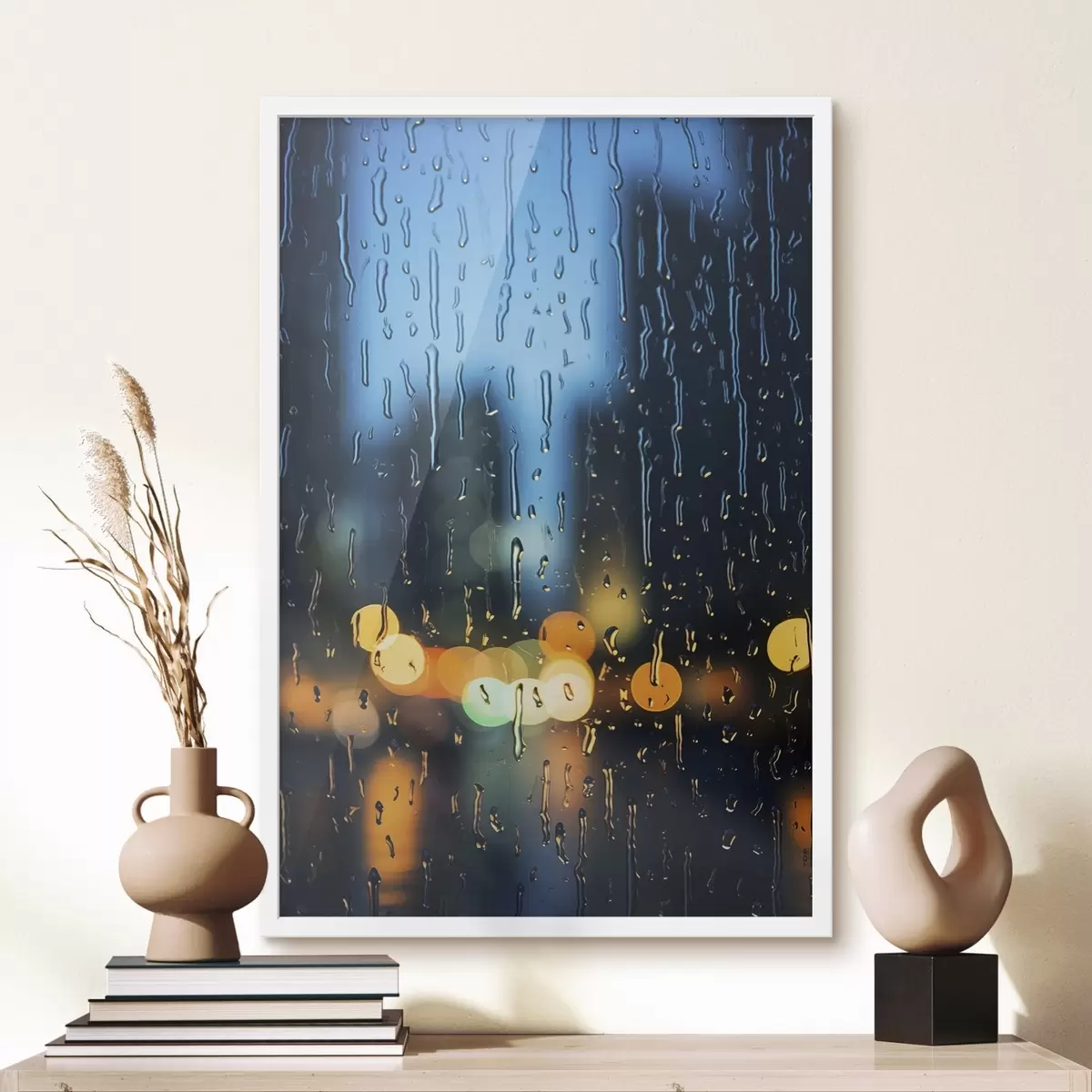 Poster Picături de ploaie pe fereastră cu lumini de noapte Nr f45500