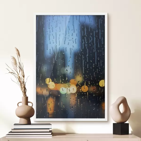 Poster Picături de ploaie pe fereastră cu lumini de noapte f45500