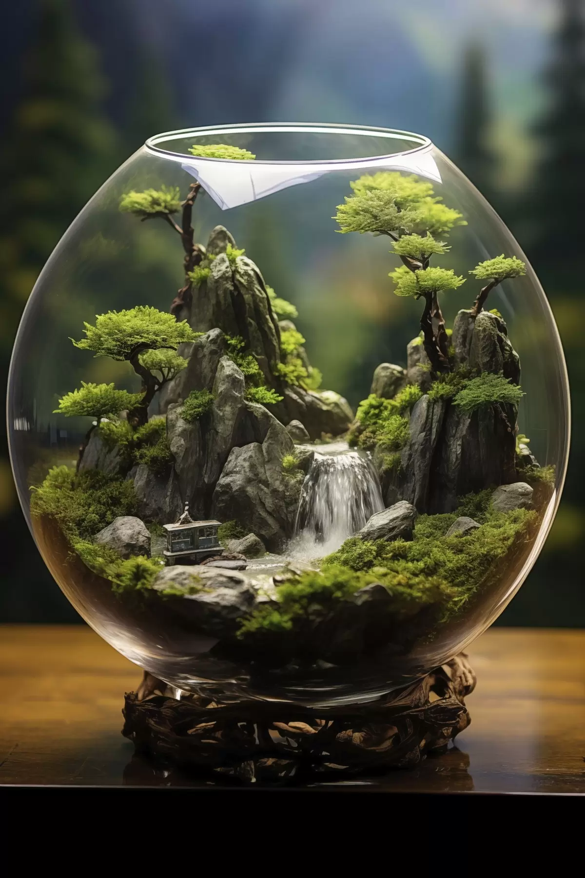 Poster Peisaj miniatural cu cascadă într-o minge de sticlă Nr f45502