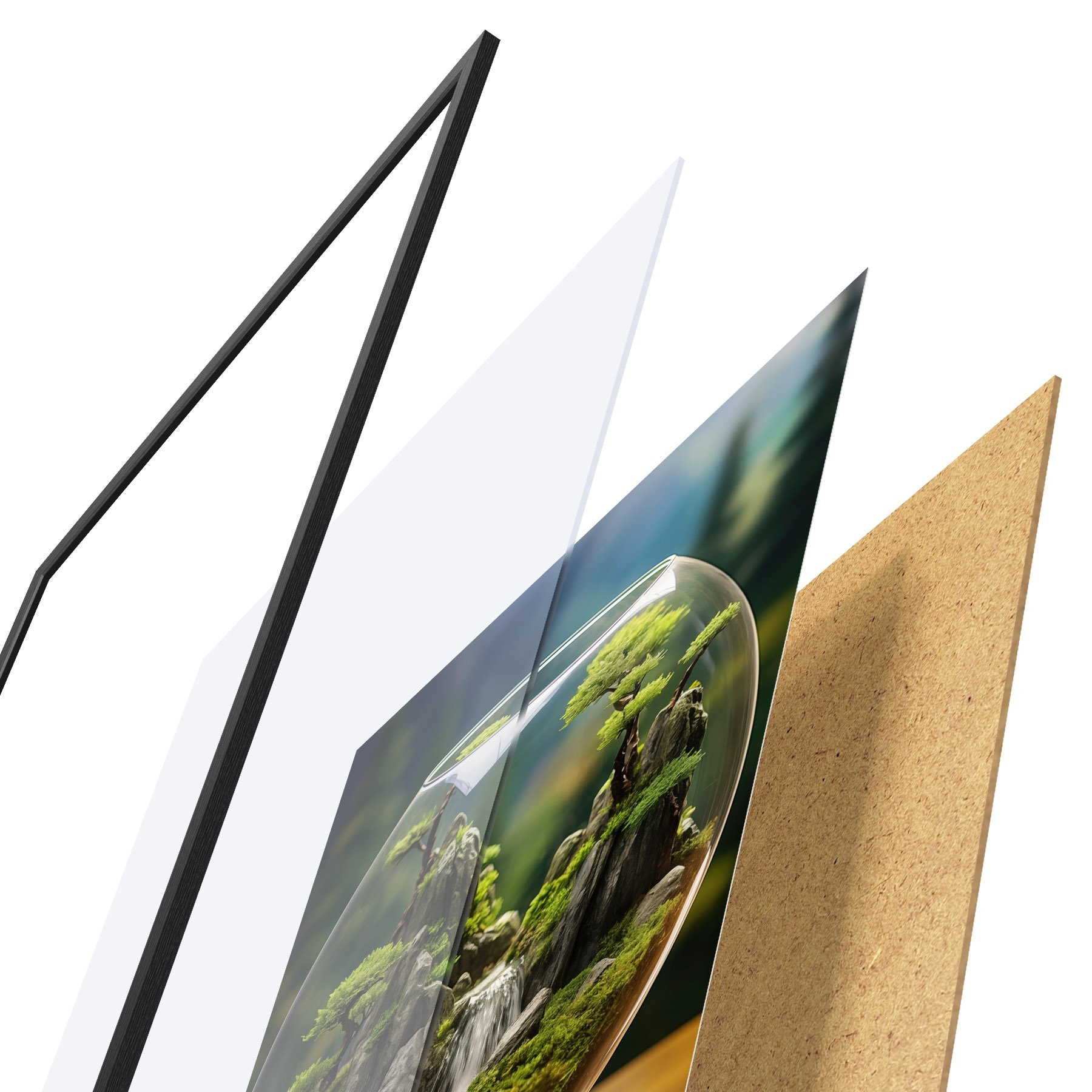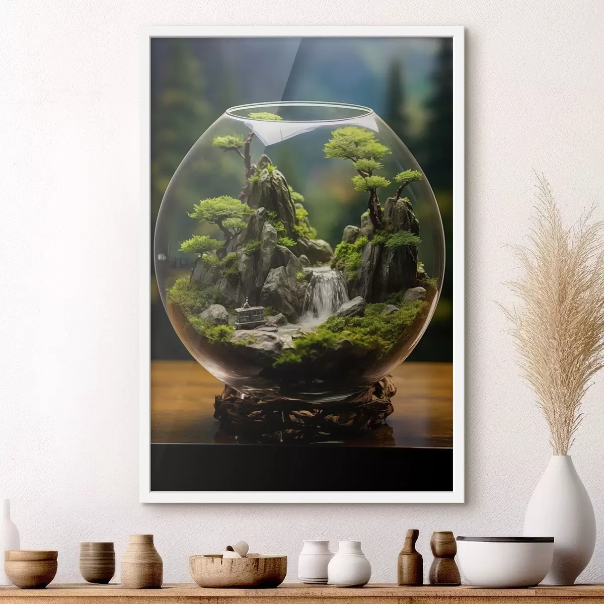 Poster Peisaj miniatural cu cascadă într-o minge de sticlă f45502