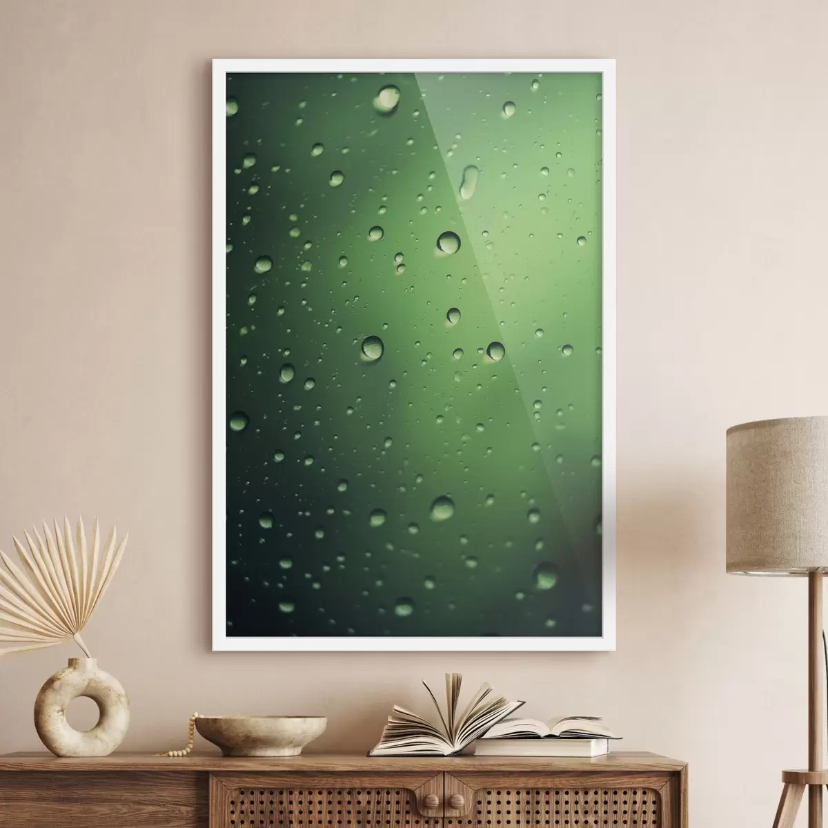 Poster Picături de apă pe sticlă verde close-up Nr f45521