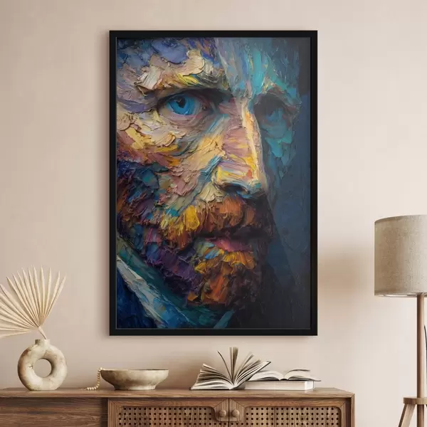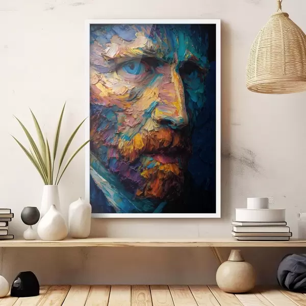 Poster Portret decorativ Van Gogh: pictură în relief în tonuri de albastru și portocaliu Nr f45546