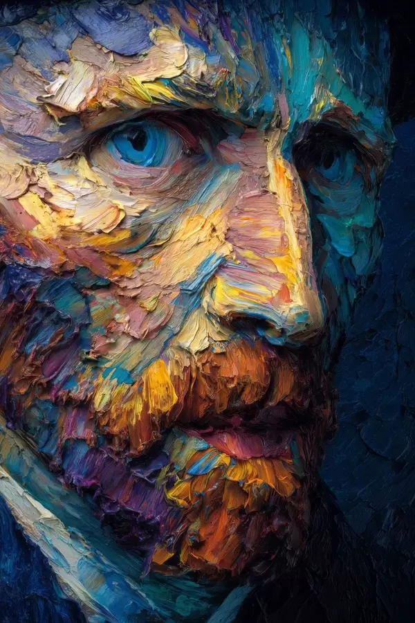 Poster Portret decorativ Van Gogh: pictură în relief în tonuri de albastru și portocaliu Nr f45546