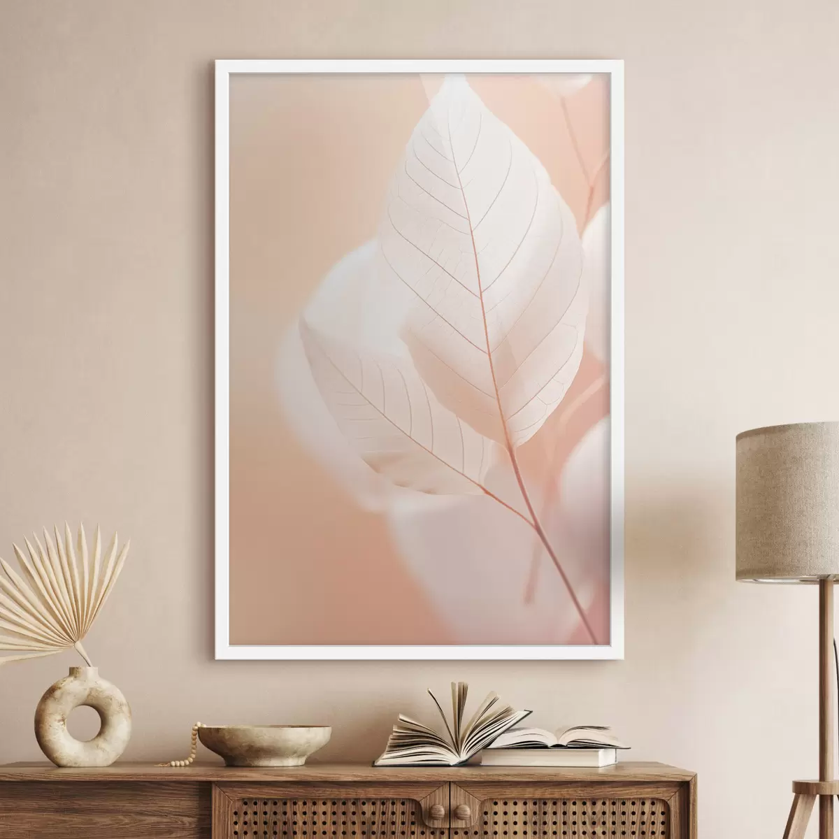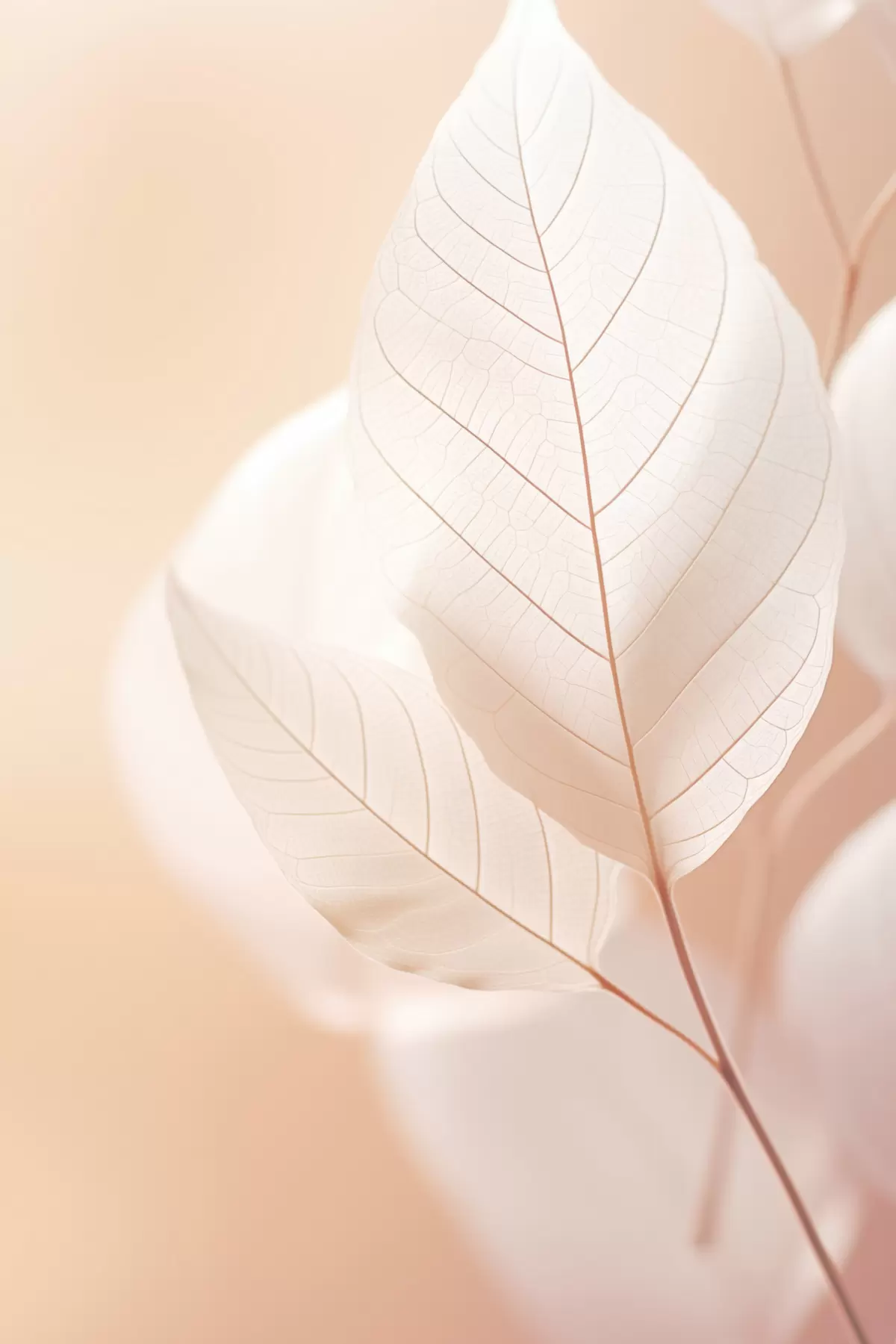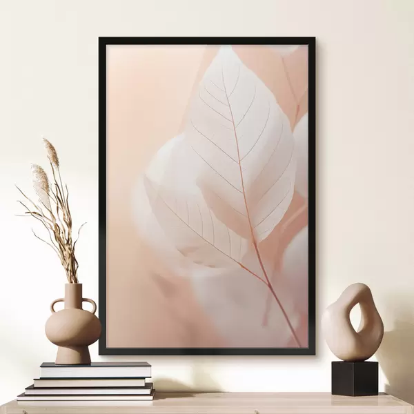 Poster Frunze delicate, translucide, cu modele complexe de vene, fundal piersică moale, compoziție botanică minimalistă Nr f45555