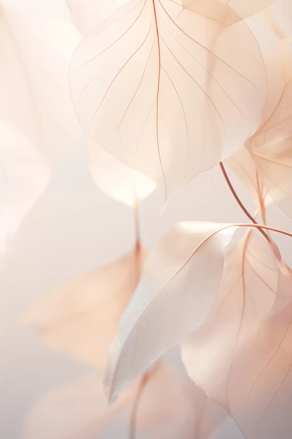 Poster Close-up de frunze translucide cu vene delicate, paleta de culori piersică moale și alb, fundal neclar Nr f45556