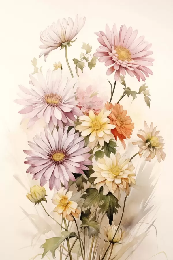 Poster Un buchet de flori colorate, stil acuarelă moale, pe un fundal luminos Nr f45559