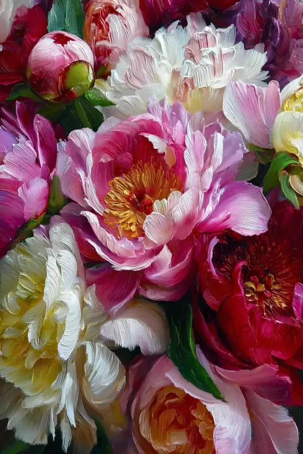 Poster Peonii luxuriante în tehnica impasto Nr f45595
