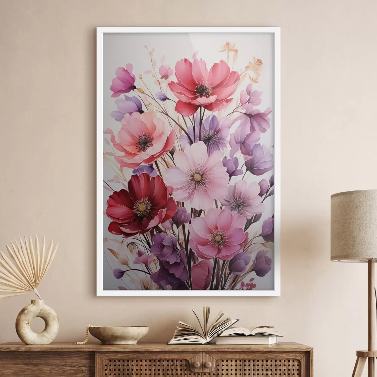 Poster Buchet delicat de maci roz și liliac pe un fundal ușor, stil acuarelă Nr f45601