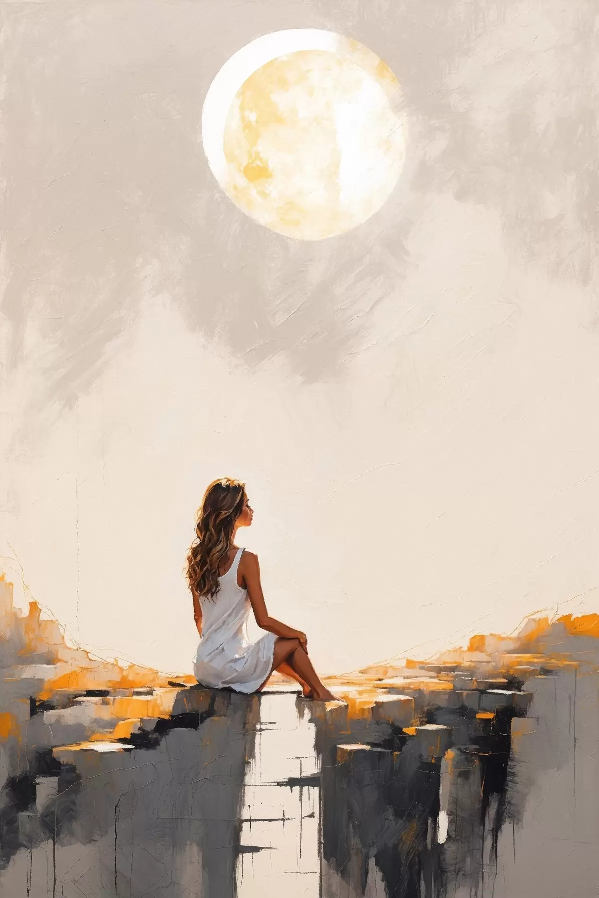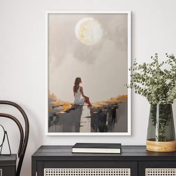 Poster Fată într-o rochie albă stând sub o lună mare Nr f45621