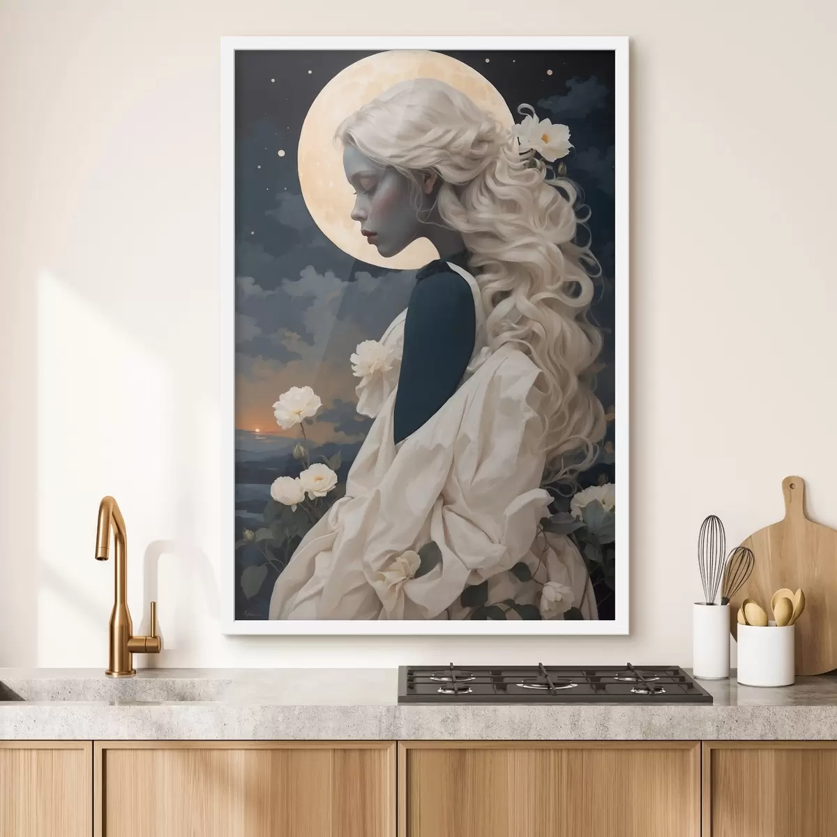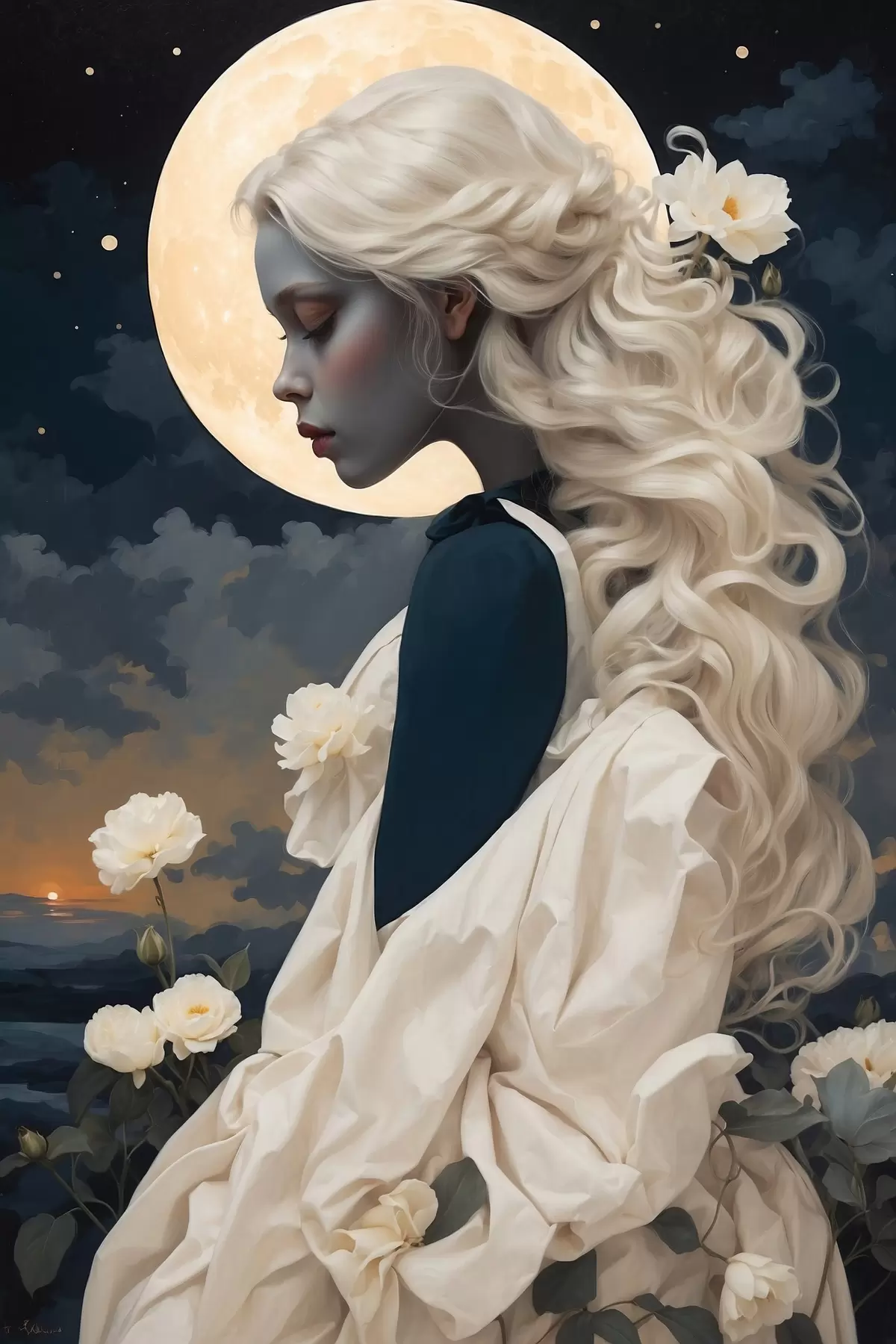 Poster Femeie cu părul alb sub lună Nr f45622